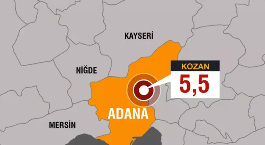 AFAD, Adana'nın Kozan ilçesinde 5,5 büyüklüğünde deprem meydana geldiğini duyurdu. Deprem, Osmaniye ve Gaziantep'te de hissedildi. Tufanpaşa Mahallesi'ndeki metruk bir binada hasar meydana gelirken Adana Valisi Süleyman Elban, "10 saniyenin üzerine sallandık. İlk belirlemelere göre herhangi bir olumsuz durum yok. Yaralı ya da can kaybı yok. Taramalarımız sürüyor." ifadesini kullandı.