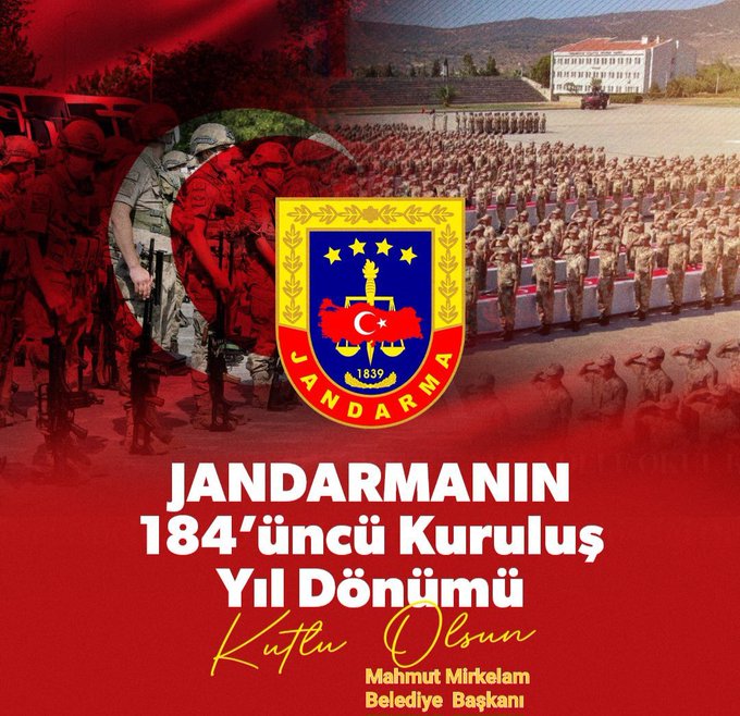 " Jandarma teşkilatımızın 184'üncü kuruluş yıldönümünü tebrik ediyorum. Ülkemiz ve Milletimiz için canlarını feda eden aziz Şehitlerimizi ve vefat eden Kahraman Gazilerimizi rahmetle yad ediyorum. Görevi başında ki Jandarma teşkilatının kıymetli personeline esenlikler dilerim."