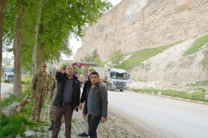 Birecik’ten Halfeti’ye giderken Kelaynak Üretme İstasyonu güzergâhında söz konusu sorunlu bölgede iyileştirme çalışmaları devam ediyor.