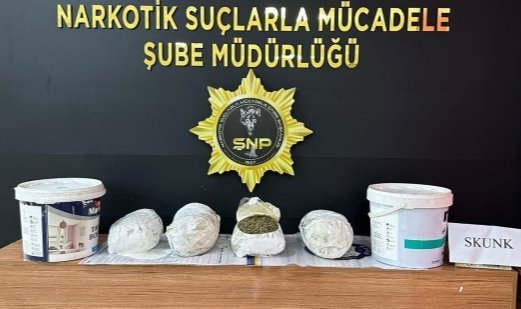 Şanlıurfa İl Emniyet Müdürlüğü Narkotik Suçlarla Mücadele Şube ekipleri, uyuşturucu madde kullanımı ve satışıyla mücadeleye yönelik çalışmalarını sürdürüyor. Bu çerçevede durdurulan bir aracı, şüphe üzerine durdurarak arama yaptı. Yapılan aramada, aracında bagajında bulunan boya kutuları içerisinde 4 paket halinde 3 kilo 350 gram skunk maddesi ele geçirildi. Olayla bağlantısı bulunan şüpheli 2 şahıs yakalanarak gözaltına alındı. Olayla ilgili soruşturma sürüyor.