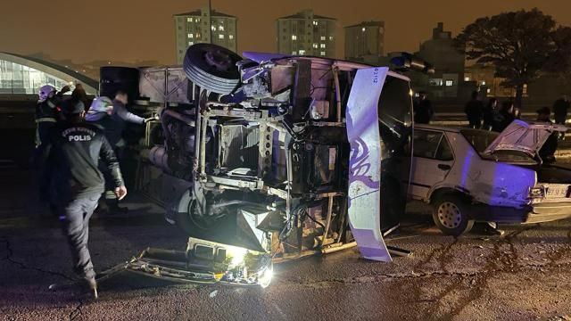 Gaziantep'in Şehitkamil ilçesinde otomobille çarpışan polis midibüsünün devrilmesi sonucu 5 çevik kuvve polisi yaralandı.