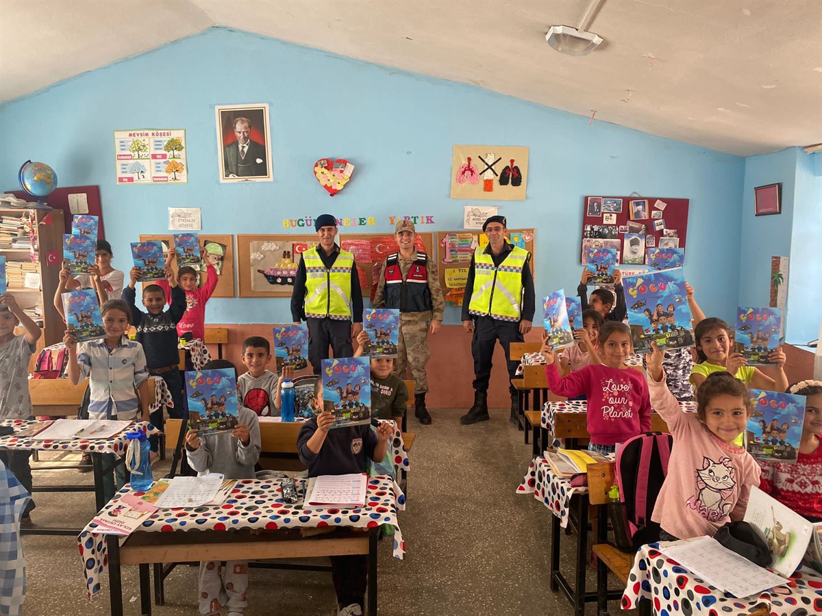 Eğitim sonunda öğrencilerimize güvenlik güçlerimiz tarafından trafik boyama kitabı ve jandarma çocuk dergisi hediye edildi.