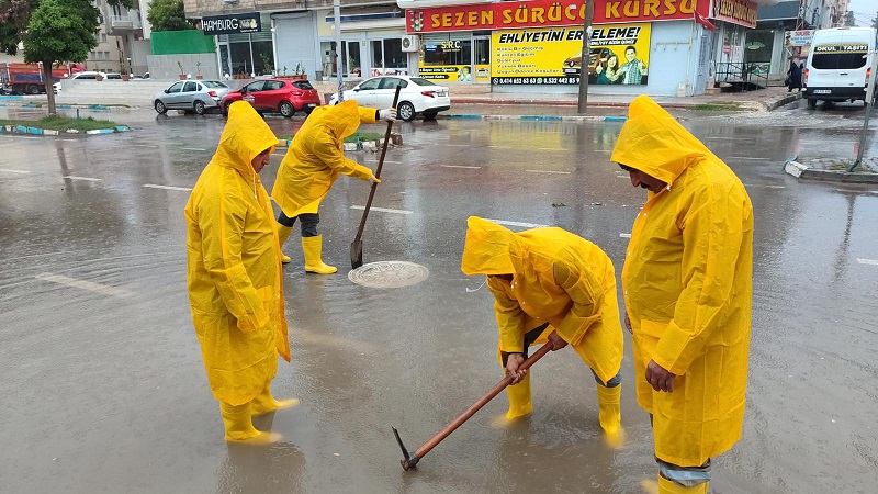 Şiddetli yağışların yağmasıyle ile birlikte Birecik Belediyesi tüm ekipleri seferber oldular.