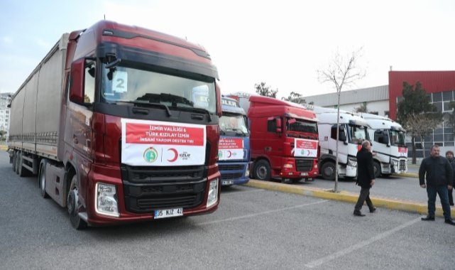 İzmir'de Aliağa, Selçuk ve Çiğli Belediyesi tarafından depremzede vatandaşlar için organize edilen yardımlar deprem bölgelerine ulaştırılmak üzere yola çıktı.