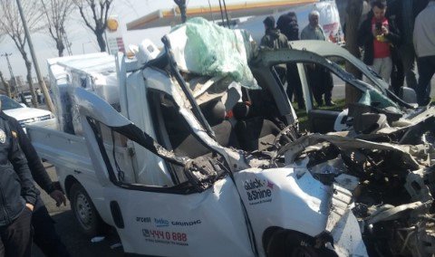 Kaza, Siverek-Şanlıurfa karayolu Selahattin Eyyubi Bulvarı'nda meydana geldi. Alınan bilgilere göre, Serhat Nazlı idaresindeki 63 N 7124 plakalı hafif ticari araç, B.G. idaresindeki 63 EV 856 plakalı kamyona arkadan çarptı. Çarpmanın etkisiyle hafif ticari araç hurdaya döndü, araç sürücüsü Serhat Nazlı ve yanında bulunan yolcu M.P. ağır yaralandı.