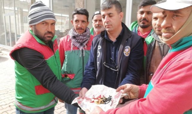 Karaköprü Belediyesi Temizlik İşleri Müdürlüğü personeli komşu il Adıyaman'da sokak temizliği çalışmalarını sürdürürken, örnek bir davranışa imza attılar. Rutin sokak temizliği ve çöp toplama faaliyeti yürüten personel çöp kenarında içinde 25 Cumhuriyet altını, 12 yarım, 24 çeyrek altın ile bir çift altın küpe ve bir altın yüzük olan bir poşet buldu. İçinde altın olan poşeti görünce hemen güvenlik güçlerine haber veren Karaköprü Belediyesi temizlik işleri personeli altınları sahibine ulaştırılmak üzere tutanakla polise teslim etti.
