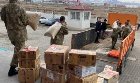 Kars’tan gönderilen gıda maddelere depremzedelere dağıtılacak. Kars’tan bölgeye yardımların süreceği öğrenildi.