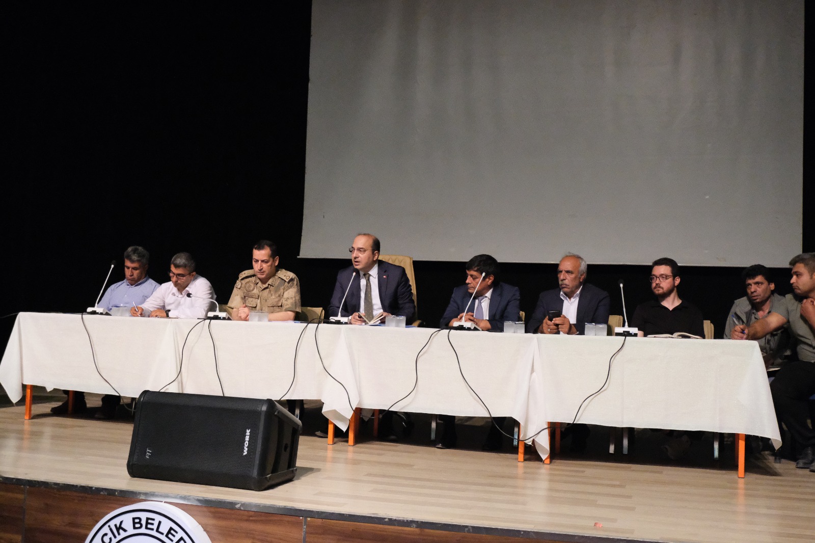 Enver Nebihe Karaata Kültür Salonunda gerçekleşen toplantıya daire amirleri ve mahalle muhtarları katıldı.