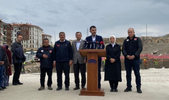 Kahramanmaraş merkezli depremlerden etkilenen illerden biri olan Malatya’da Battalgazi ilçesine bağlı Orduzu Mahallesi Gelinciktepe mevkiinde yapımı devam eden TOKİ konutlarında incelemelerde bulunan Çevre, Şehircilik ve İklim Değişikliği Bakanı Murat Kurum depremin vurduğu 11 ilde çalışmaların eş zamanlı devam ettiğini söyledi.