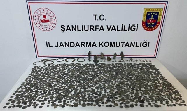 İl Jandarma Komutanlığı Kaçakçılık ve Organize Suçlarla Mücadele Şubesi (KOM) ekiplerince, Şanlıurfa Cumhuriyet Başsavcılığı koordinesinde yürütülen "tarihi eser kaçakçılığı" çalışmaları çerçevesinde bir kişinin elindeki tarihi eserleri satmak için müşteri aradığı bilgisine ulaşıldı. Şüphelinin tarihi eserleri satmak için aracıyla bir başka noktaya naklettiğini tespit eden ekipler, düzenledikleri operasyonda otomobili durdurdu. Araçta yapılan aramada, Roma ve Bizans dönemlerine ait 5-6 santimetre uzunluğunda 6 bronz heykel, bronz ve gümüş 2 bin 104 sikke, 4 bilezik, çeşitli figürlerde 19 obje ve mumdanlık ele geçirildi. Gözaltına alınan şüphelinin jandarmadaki işlemleri devam ediyor.