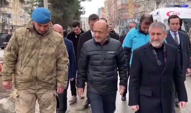 Bakan Nebati, Birecik ilçesinde depremden hasar gören ve yıkılan binalardaki arama kurtarma faaliyetlerini yerinde inceledi.