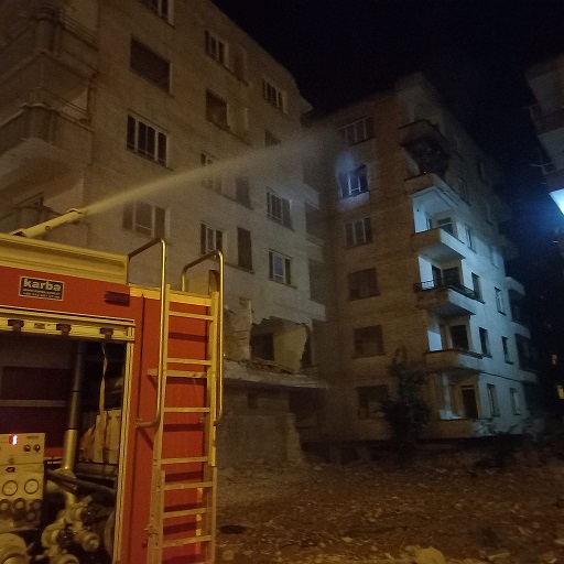 İlçemizde depremden hasar almış hasarlı binada çıkarılan yangın itfaiyeyi alarma geçirdi