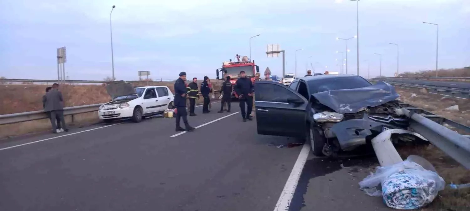 Birecik otoban yolundaki kazada iki otomobilin çarpışması sonucu 6 kişi yaralandı, kadınlar gözyaşlarına boğuldu.