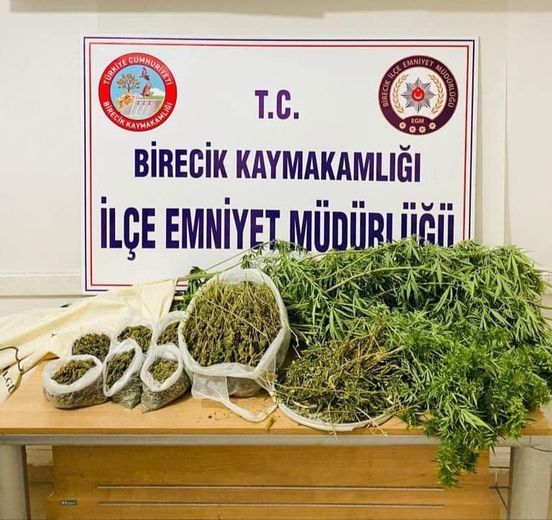 “Birecik İlçe Emniyetimizce yapılan ev aramasında; 1.370 gr kurutulmuş esrar ve 8 kök Hint keneviri ele geçirilmiştir. Olayla ilgili 1 şahıs gözaltına alınmış, hakkında adli soruşturma başlatılmıştır. Kahraman emniyet teşkilatımıza”