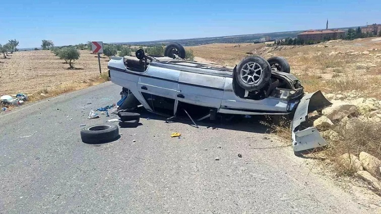 Birecik'te bir otomobil lastiğinin kopması sonucu devrildi, 2 kişi yaralandı.