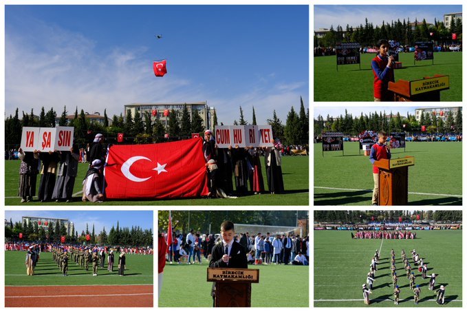Program Kaymakam Mustafa GÜRBÜZ, Garnizon Komutanı Per.Bnb.Sadettin BAL ve Birecik Belediye Başkanı Mehmet BEGİT’in halkımızın 29 Ekim Cumhuriyet Bayramı’nı kutlamasının ardından Saygı Duruşu ve İstiklal Marşı okunması ile başladı. Kaymakam Mustafa GÜRBÜZ’ün günün anlam ve önemini belirten konuşmasının akabinde öğrenciler tarafından şiirlerin okunması ve yapılan gösterilerin ardından program tören geçişiyle devam etti
