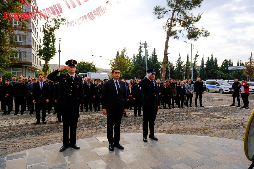 Tören, Kaymakamlık, Garnizon Komutanlığı ve Belediye Başkanlığı çelenklerini Atatürk Anıtına sunulmasının ardından saat: 09.05’te çalınan sirenler eşliğinde 2 dakikalık saygı duruşu ve İstiklâl Marşımızın okunmasıyla sona erdi.