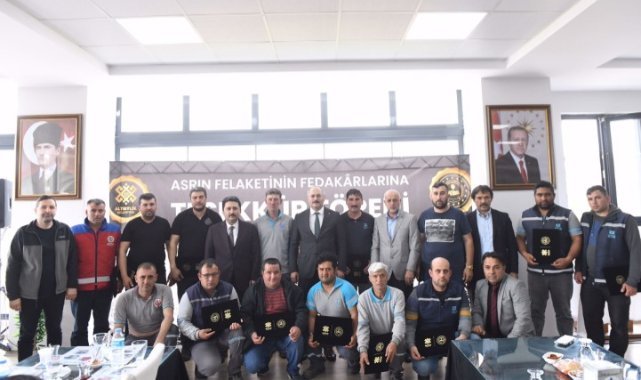 Deprem bölgesine giden gönüllülere ve destek olanlara teşekkür plaketi verildi