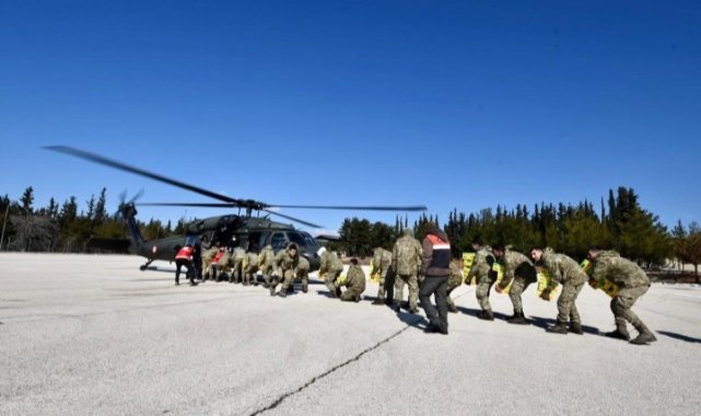 Çevre, Şehircilik ve İklim Değişikliği Bakanı Murat Kurum’un koordinasyonunu yürüttüğü Gaziantep'teki deprem çalışmaları aralıksız devam ediyor. AFAD tarafından organize edilen yardım malzemeleri, dağlık alanlardaki köylere askeri helikopterlerle ulaştırıldı. Gaziantep İl Jandarma Komutanlığı’nın takip ve koordinesindeki yardımlar 5. Zırhlı Tugay Komutanlığı'nda toplanarak, askerler tarafından askeri helikopterlere taşındı. Daha sonra havalanan 5 helikopter, 17 sortide İslahiye ve Nurdağı ilçelerinin 15 dağ köyüne iniş yaptı. 7,2 ton içme suyu ve gıda kolisi, 87 çadır, 2 bin 400 bebek bezi ve 700 battaniyeden oluşan yardım malzemeleri, askeri personel tarafından depremzedelere dağıtıldı.