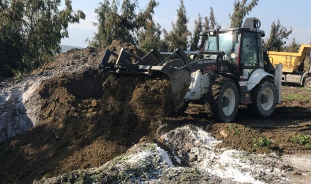 Kahramanmaraş merkezli iki büyük depremin ardından Hatay’da dezenfeksiyon, ilaçlama ve kemirgenle mücadele çalışmaları aralıksız sürüyor. Gölcük Belediye Başkanı Ali Yıldırım Sezer koordinesinde tüm ilçelerde devam eden çalışmalarda ekipler, Antakya Cilvegözü yolu üzerinde bulunan Üzümdalı köyünde depremde telef olan hayvanları enkaz altından çıkararak gömülmesini sağladı.