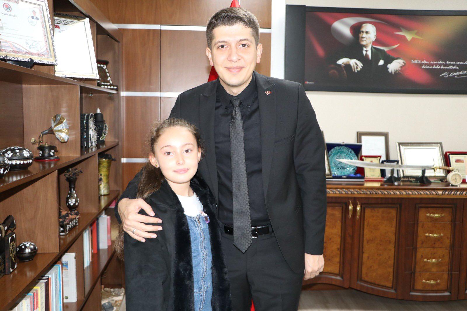 Halfeti Kaymakamı Zikrullah ERDOĞAN, Cumhuriyetimizin 100. Yılı Resim Yarışması’nda birinci olan yetenekli öğrenci Hiranur AKMEŞE’yi altın ile ödüllendirerek makamında ağırladı.