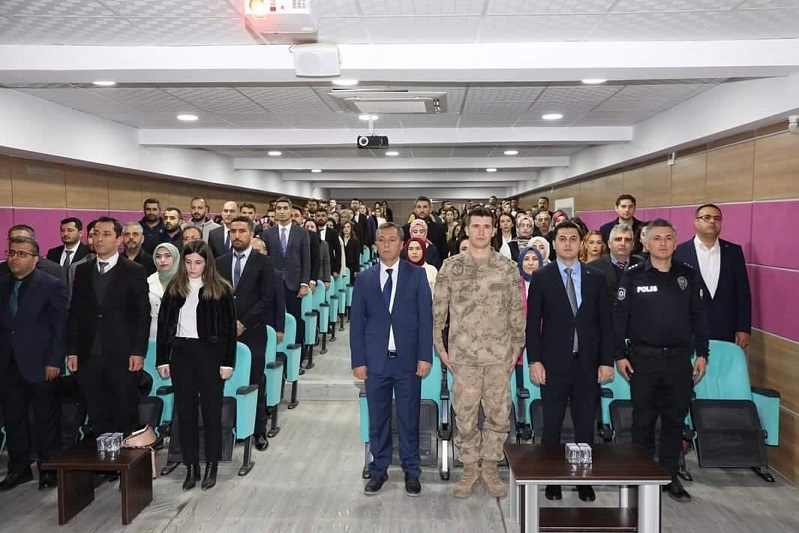 Program, öğretmenlik mesleğine yeni başlayan öğretmenlerimizin yemin etmesiyle başladı. Başöğretmen Gazi MustafaKemalAtatürk ve şehit öğretmenlerimiz anısına bir dakikalık saygı duruşu ve İstiklal Marşımızın okunmasıyla devam etti.