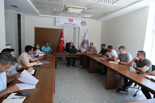 Birecik Kaymakamı Kadir Duman başkanlığında, ilgili kurum amirlerinin ve ihaleyi alan firma yetkililerinin katılımıyla ilçemizde yıkımı devam eden ağır hasarlı yapıların son durumu ile ilgili değerlendirme toplansı yaptı.
