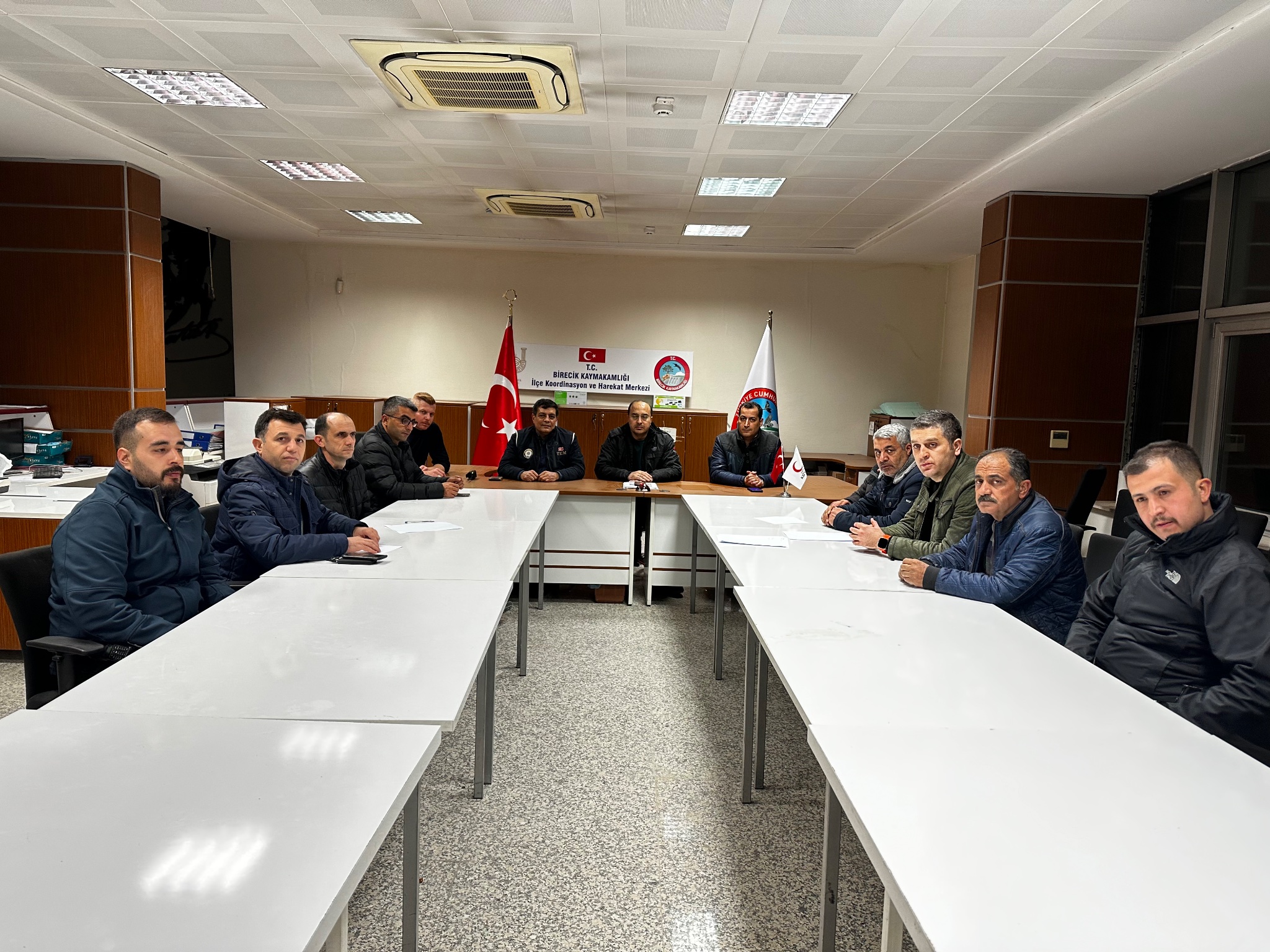 Kaymakam Kadir Duman başkanlığında, bütün paydaşlarımızın katılımıyla Birecik Afet Yönetim Merkezinde ilçe koordinasyon toplantısı düzenlendi. Toplantıda; Çevre, Şehircilik ve İklim Değişikliği İl Müdürlüğünce hasar tespit çalışmaları, Ağır ve orta hasarlı binalar Yardımları sürüyor.