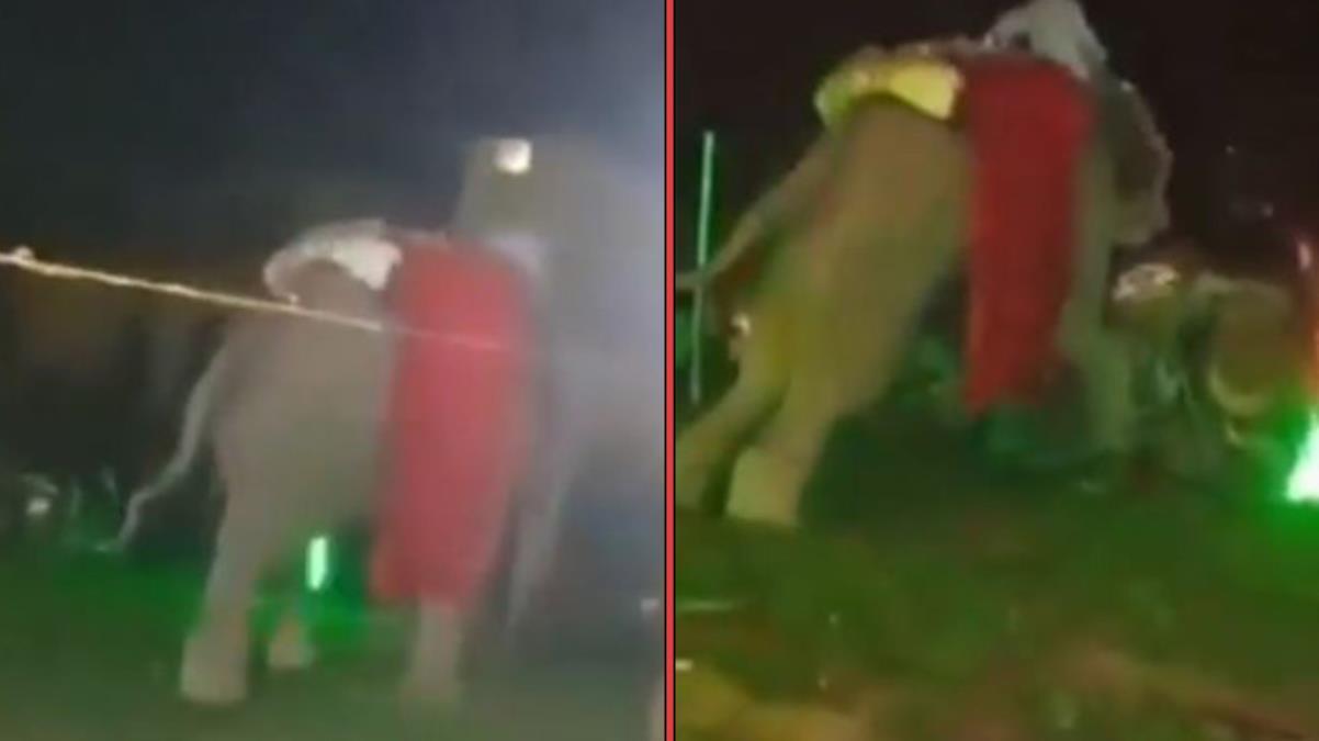 Hindista'nın Uttar Pradesh eyaletinde yapılan düğün töreninde damat Anand Tripathi, fil üzerinde düğünün yapıldığı mekana geldi. Damat alana giriş yaptığı sırada davetlilerin patlattıkları maytap seslerinden rahatsız olan fil, alanda bulunan masa ve sandalyeleri parçaladıktan sonra araçlara daldı.