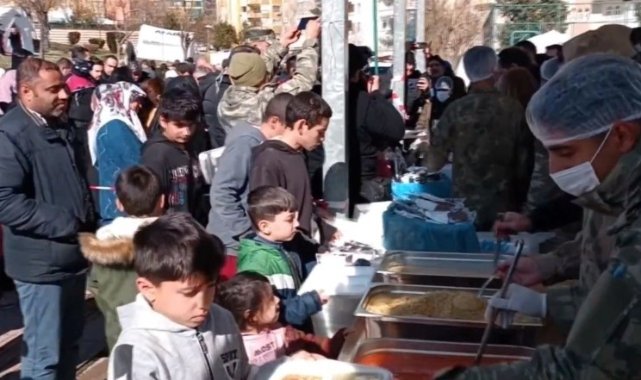 Milli Savunma Bakanlığı (MSB), Kahramanmaraş merkezli yaşanan depremler sonrası Şanlıurfa'daki depremzedelere sıcak yemek sağlamaya devam ediyor.