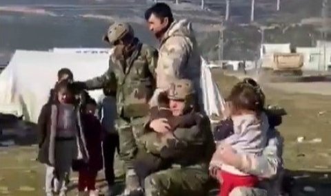 Milli Savunma Bakanlığı tarafından yapılan sosyal medya paylaşımında, “Bu anonsumuz da çocuklarımız için. Mehmetçik bölgedeki yardım faaliyetlerinde evlatlarımızı unutmuyor. 5'inci Ana Jet Üs Komutanlığı personelimiz, Kahramanmaraş’ın Nurdağı ilçesindeki çadır kentte bulunan çocuklarımızı ziyaret ederek çikolatalarını ulaştırdı. Canımız Türkiye” denildi.