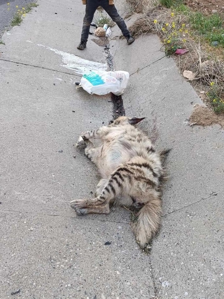 Birecik ilçesinde, nesli tükenme tehlikesi altında olan çizgili sırtlan araç çarpması sonucu telef oldu.