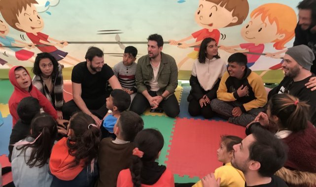 Burak Haktanır, Musa Evren, İsmail Hakkı Ürün, Birand Tunca, Gökhan Karacık, Yuşa Ebrar Dursunoğlu, Uğurcan Keleş, Muhammed Emre Kaya, Emir Fırat Işık, Ali Buhara Mete, Recep Çavdar, Tamer Karadağlı, Emre Bulut, rap sanatçısı Resul Aydemir ve futbolcu Ümit Karan'ın bulunduğu ekip, ilçedeki konteyner kent içerisinde kurulan çadırlarda çocuklarla bir araya geldi.