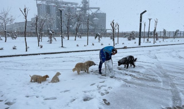Şanlıurfa’da hafta sonu başlayan yoğun kar yağışı nedeniyle yüzlerce personel ve iş makinesiyle sahada olmaya devam eden Eyyübiye Belediyesi, bir yandan kar küreme, tuzlama ve kumlama çalışması yaparken bir yandan da sokakta yaşayan can dostlarımız hayvanlar için seferber oldu. Kar yağışı nedeniyle kendilerini besleyen insanların çoğu evlerinde olduğu için sokaklarda açlık tehlikesiyle karşı karşıya kalan kedi ve köpeklerin imdadına koşan İyilik Merkezi, Zabıta ve Park Bahçe Müdürlüğü personeli, ilçenin onlarca farklı noktasında hayvanlara yiyecek dağıttı. Eyyübiye Sosyal Yardım İşleri Müdürlüğü’nde kayıtları bulunan yoksul, yetim ve kimsesiz ailelerin yanında olmaya devam eden İyilik Merkezi’nin sokakta yaşayan can dostlarına yiyecek dağıtılmasını takdirle karşılayan vatandaşlar, Eyyübiye Belediyesi’ne ve tüm personellerine teşekkür ettiler.