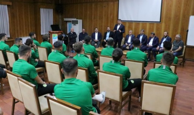 Futbolcularla bir araya gelen heyet takıma başarı dileklerinde bulunurken, tüm Şanlıurfa halkının takımın bir üst lige yükselmesi yönündeki dileklerini iletti.